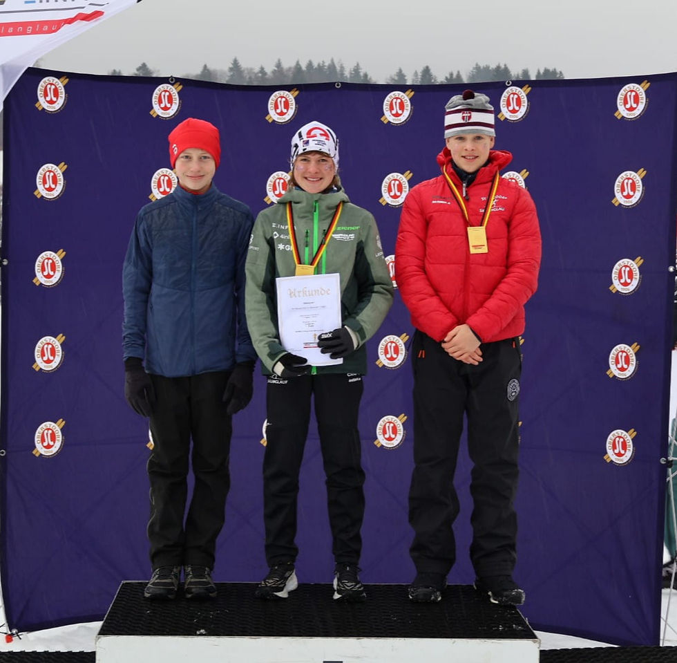 Mit insgesamt vier Medaillen an zwei Wettkampftagen setzten Jakob Wendler, Julia Schumann und Jann Hoffmann ein dickes Ausrufezeichen! Beim Technikprolog am Samstag über 1,8 km bzw. 2,5 km waren Jann Hoffmann (AK 13) und Julia Schumann (AK 15) nicht zu schlagen und wurden bei der Siegerehrung lautstark gefeiert. Besonders goldig dann auch noch der Skating-Sonntag für den Siebtklässler Jann Hoffmann, sodass er den begehrten Glaspokal für den 1. Platz in der Gesamtwertung in der AK 13 ins Erzgebirge holte. Die vierte Medaille (Bronze) an diesem Wochenende holte Julia Schumann über 5 km Skating, vom Siegerpodest strahlten mit Leila-M. Kreißig (Silber) an diesem Tag gleich zwei Sächsinnen.